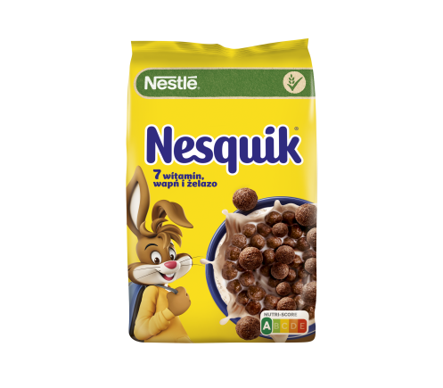 Delektuj się przepysznym, czekoladowym smakiem kuleczek Nestlé NESQUIK® od samego rana! Płatki śniadaniowe Nestlé NESQUIK® to również źródło pełnego ziarna oraz cennych składników odżywczych - witamin, żelaza oraz wapnia.